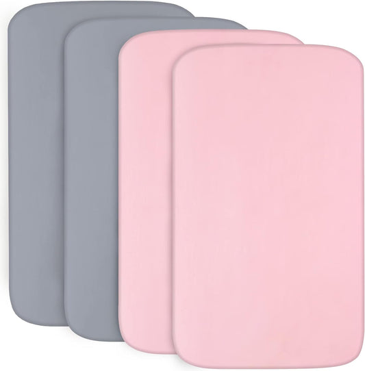 Bassinet Sheet 4 Pack for Baby Boys or Girls, Bassinet Sheets Ultra Soft Universal Fit for Most Rectangle, Oval, Hourglass Bassinet Mattress,33" x 17" (up to 33" x 20")